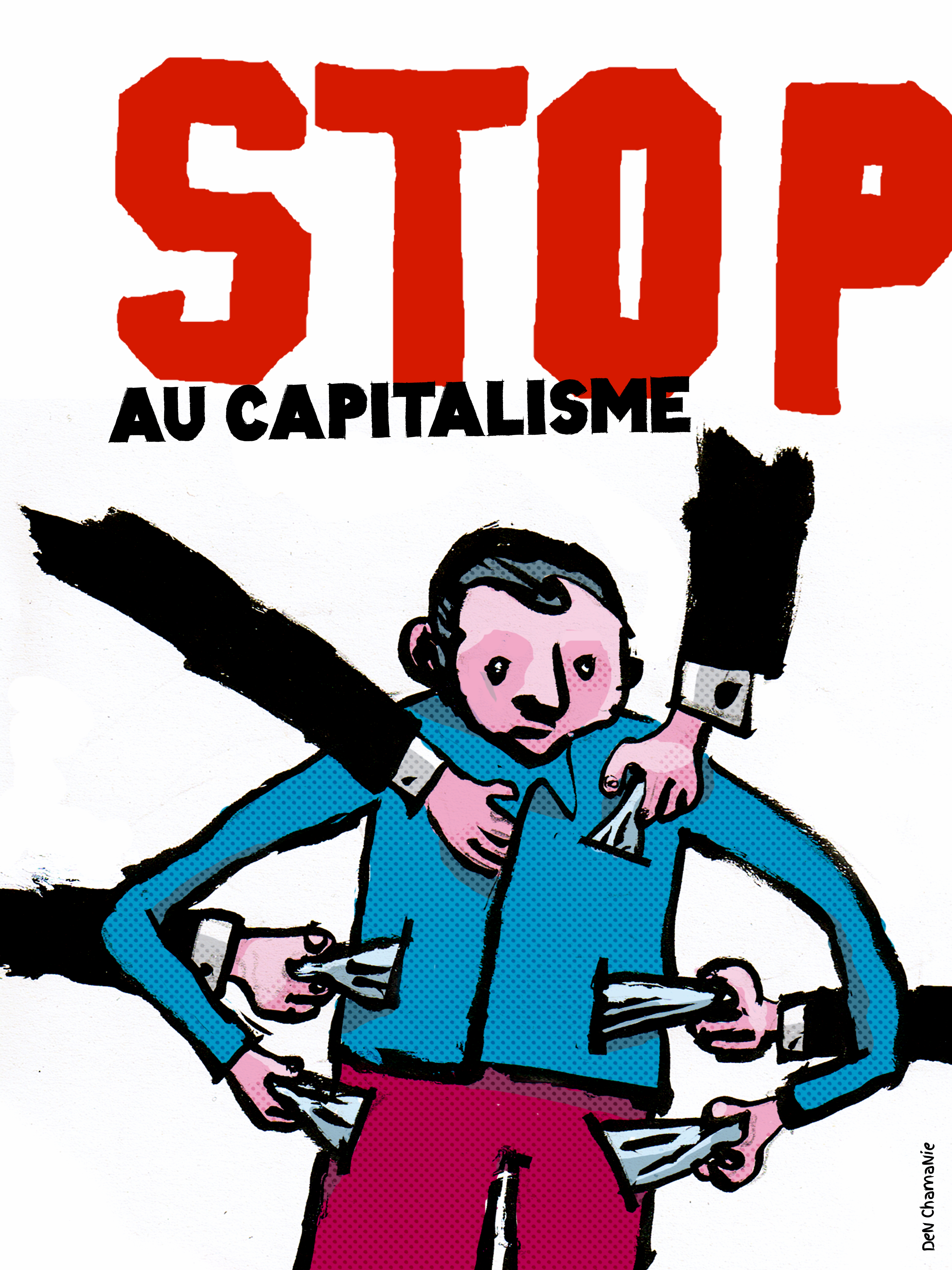 Den Chamanie, Stop capitalisme, tirage numérique professionnel encres pigmentaires sur papier semi-mat, encadré 50x40cm, 20 exemplaires, 2022.