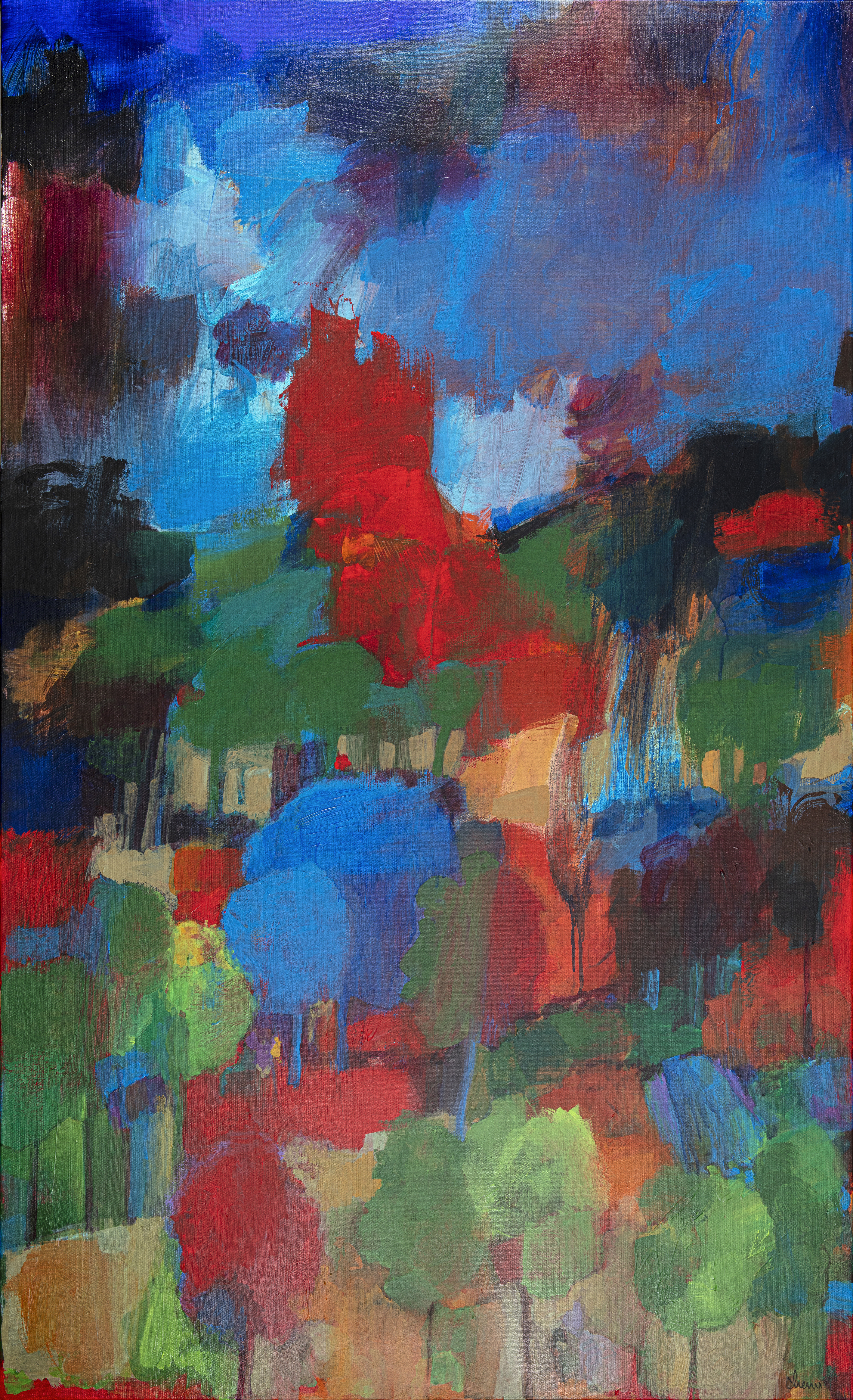 [description] => Véronique Chenu, Arbres Bleus en Pays Cathare, acrylique sur toile, 145x89cm, 2021.